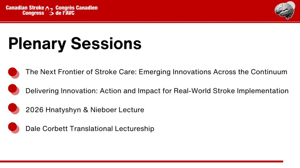 Established in 2010, the Canadian Stroke Congress is Canada’s go-to meeting in stroke research and innovation, bringing together national and international leaders in the field. View the 2026 schedule including newly added plenary session speakers and topics!
